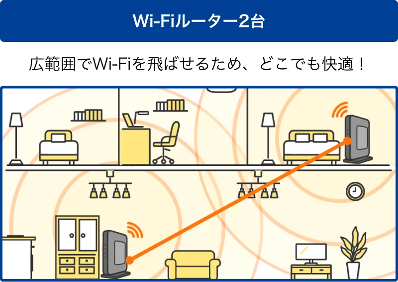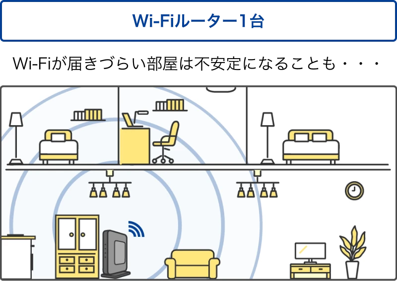 Wi-Fiルーターを2台設置(メッシュWi-Fiに)することで解決できます。