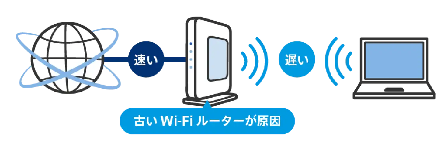 Wi-Fi機器が古くなると速度低下に繋がる可能性があります。